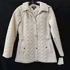 NEW Jones NY Quilted Ivory Hooded Puffer Jacket Coat Size PS NWT