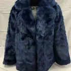 Asos Designer Faux Fur Coat Jacket Navy Blue With Collar - Size 2