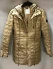 Dawn Levy Designer Gold Long Sleeve Hooded Full-Zip Quilted Coat Jacket Size...