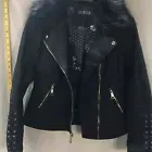 Guess Designer Black Faux Leather Long Sleeve Full-Zip Motorcycle Jacket Coat L