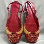 Tory Burch Red Woven Straw Slingback Sandals Flats Size 8.5