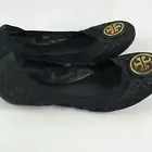 Tory Burch Designer Black Animal Print Wedge Flats Size 6