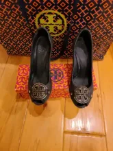 Tory Burch Designer Black Gold Pump Heels Size 5.5